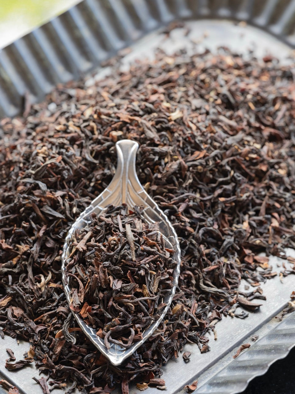 カップに注ぐと、美しいアンティークブラウンの茶液から、香ばしくフルーティーなマスカテルフレーバーが立ち上り、ひと口飲めば、ザラメのような甘い味わいと、熟れた果実を思わせるメロウな余韻が広がります。古き良きセカンドフラッシュの個性を存分に楽しめる銘柄です。