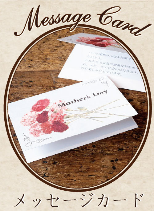 カーネーションのイラストをあしらった特別仕様のメッセージカードに、ご希望のメッセージを印刷して、同送いたします。ショッピングカートページのメッセージ欄にご記入ください。