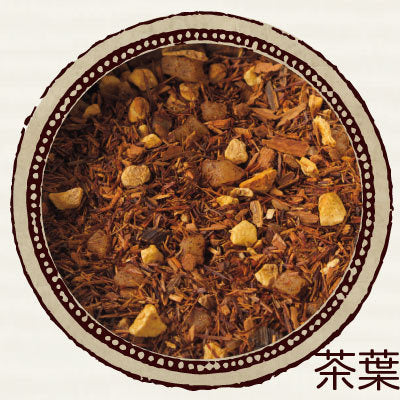 ここ数年、人気を増すルイボスティーとジンジャー。この2つの素材の個性を存分に楽しめるブレンドです。砂糖漬けのジンジャーと、甘い香りのシナモンとバニラビーンズ。ベースのルイボスティーは、紅茶に比べると低タンニンなので、仄かな甘い味わい。2つのスパイスの香りが織りなす味わいは、どこか懐かしい、昔ながらのお菓子のような香りです。