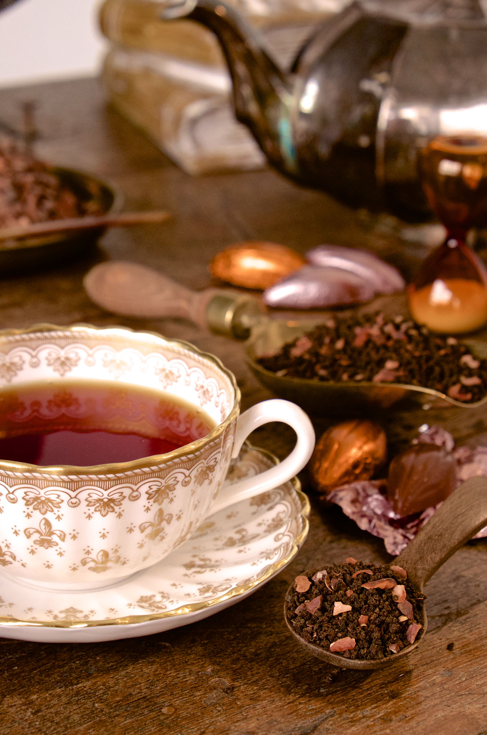 多くの人を虜にするチョコレートの香りのフレーバーティーが新登場です。芳醇な味わいの夏摘みアッサムティーに、フレーバーだけでなく、カカオピールをたっぷりブレンドしてお作りいたしました。