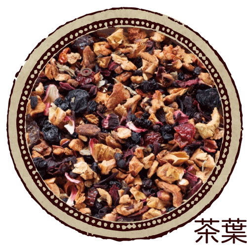 乾燥りんご、ハイビスカス、乾燥エルダーベリー、ローズヒップ、乾燥黒スグリ、ストロベリーリーフ/香料 、(一部にりんごを含む)