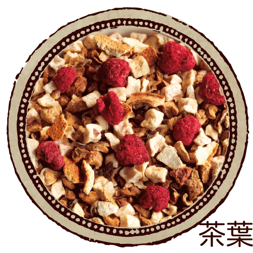 乾燥りんご、カカオ表皮、オレンジピール、乾燥ラズベリー/香料 、(一部にりんご・オレンジを含む)