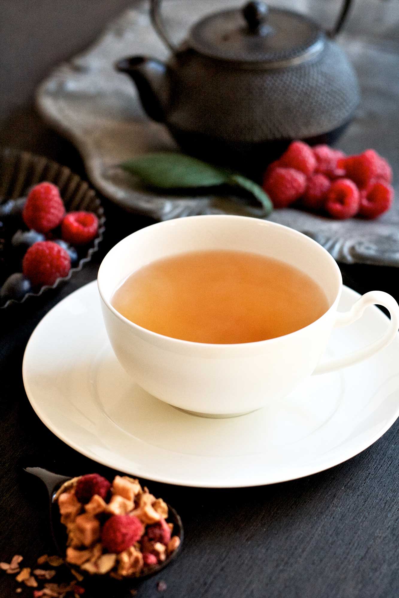 フランボワーズとチョコレート。酸味を抑えた素材だけで作った、穏やかな味わいフルーツティー。