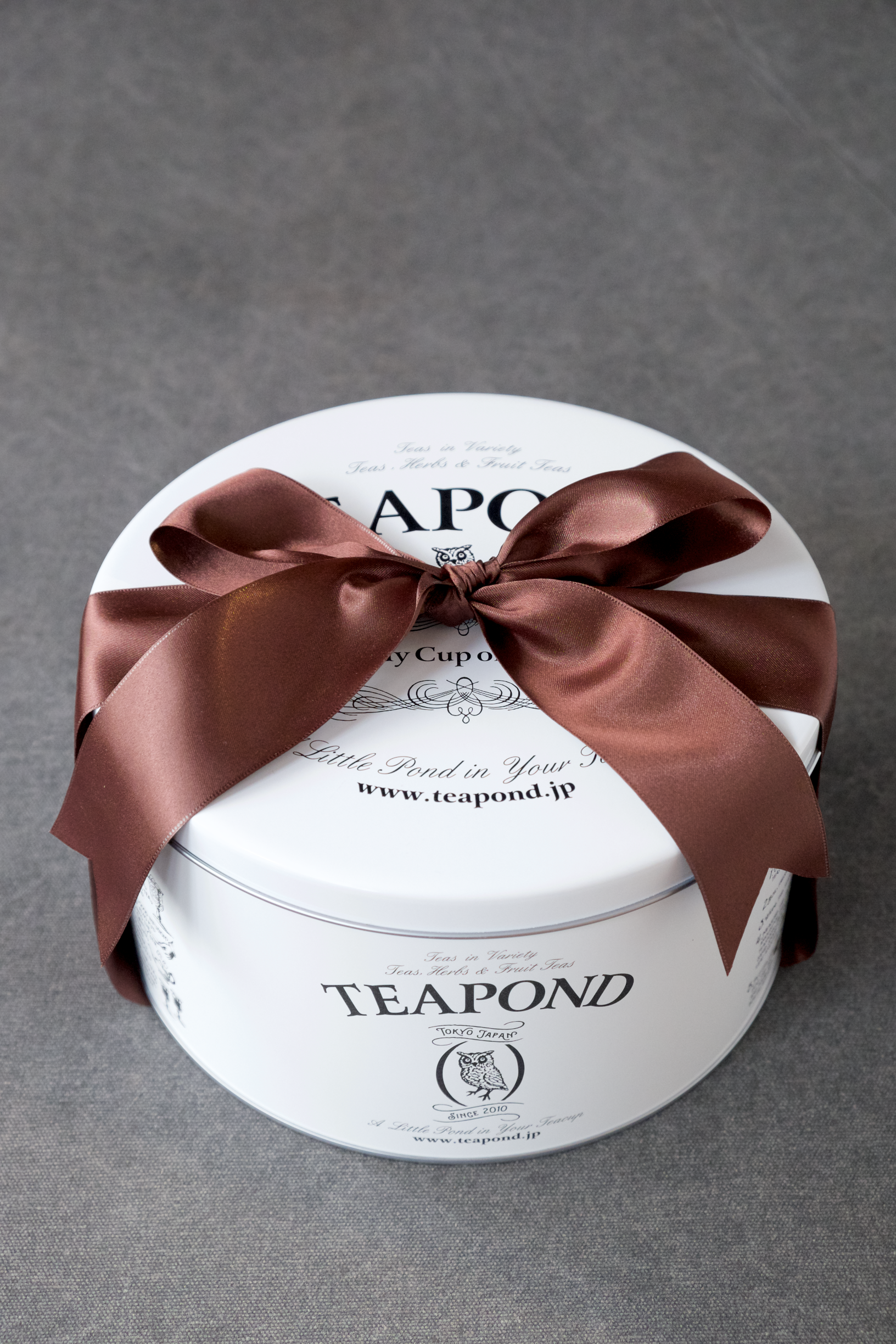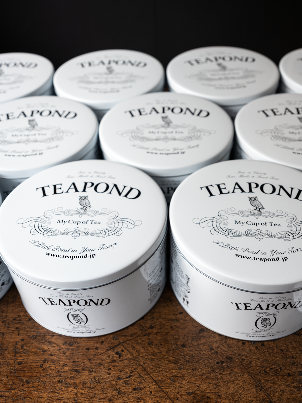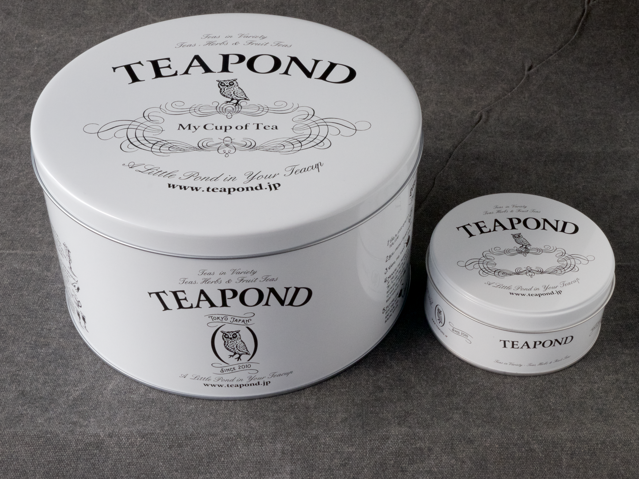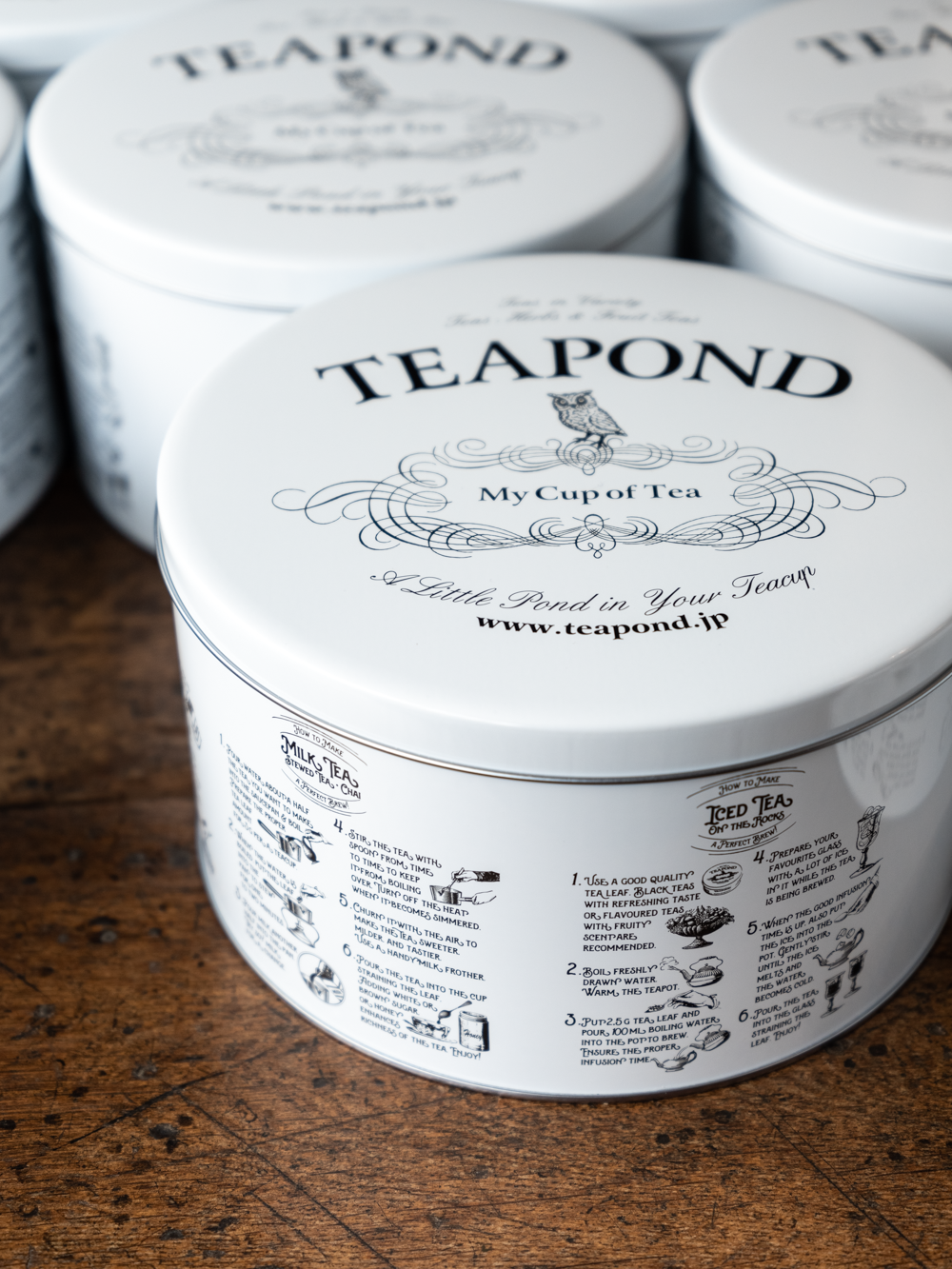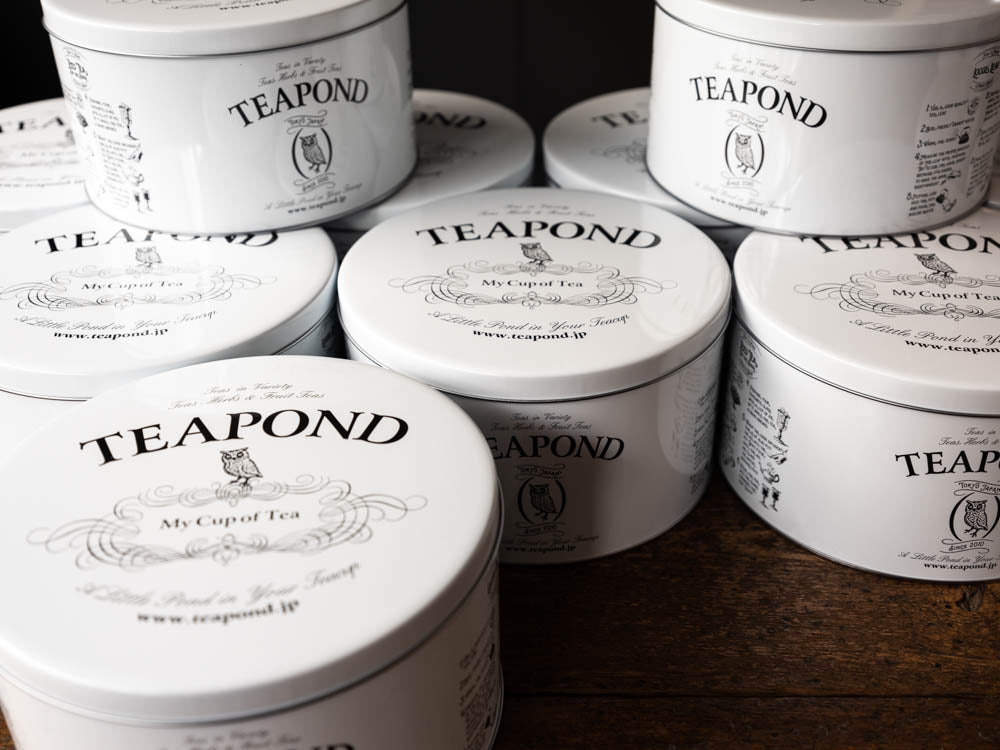 モノトーンのカラーリングにロゴと様々なお茶の入れ方をデザインに落とし込んだ大缶。