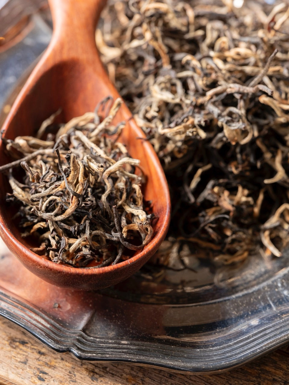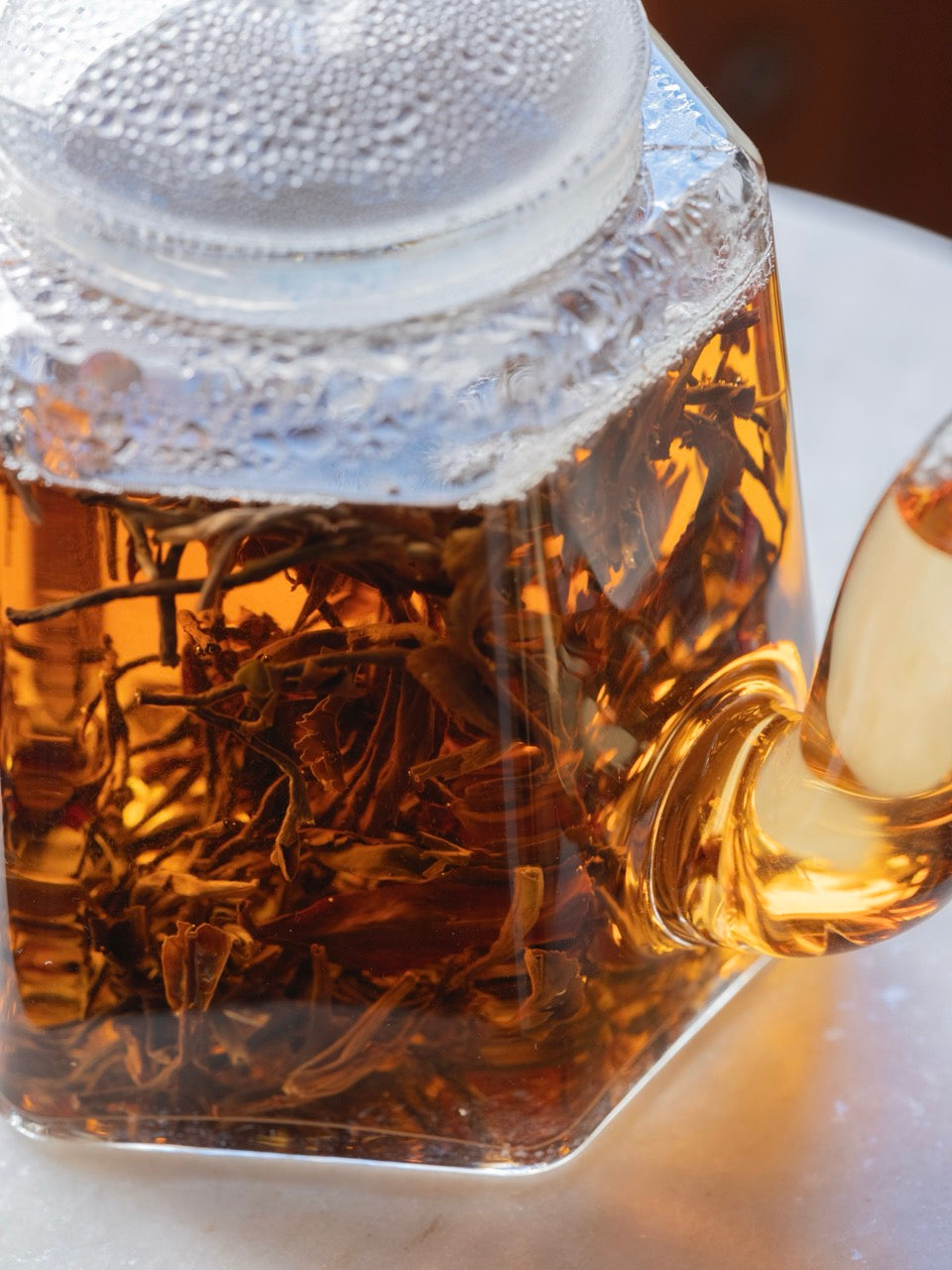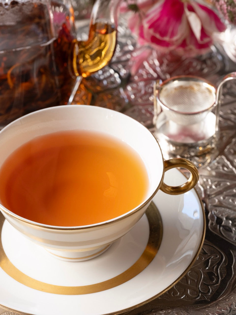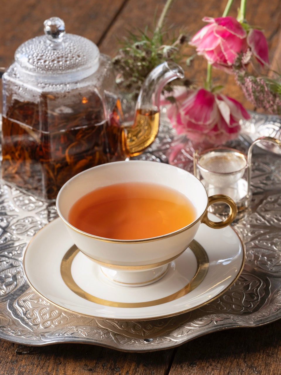 長くうねった金色の芯芽を多く含んだ茶葉からは、丁寧な摘み取りと製茶作業がうかがえます。お湯に解けた茶葉がゆっくりと広がりセピア色の水色に変わる頃、ポン菓子のような甘く香ばしい香りと、デーツや干し柿を連想させる密度ある甘い味わいが溶け合った特別な一杯をお楽しみいただけます。