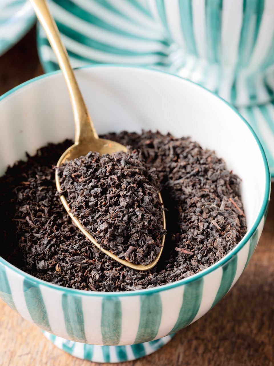 スリランカの古都キャンディ地方から届いたセイロン紅茶です。黒々と細かい茶葉にお湯を注ぐとはらはらとお湯の中でジャンピングし、オレンジ色の美しい水色 (すいしょく) がカップに映える一杯となります。ほっと落ち着く仄かなウッディー香とマイルドで優しい甘みが印象的。お茶だけでも、お菓子と一緒でも、夏の日にはアイスティーとしても、時間を選ばずにどんなティータイムにも馴染む味わいが魅力的な親しみやすい銘柄です。
