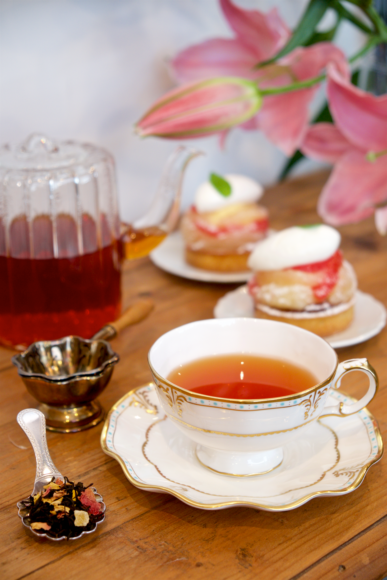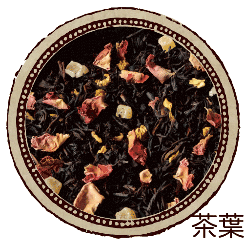 甘い果実と花々の香りが、カップの中で華やかなハーモニーを奏でるフレーバーティー