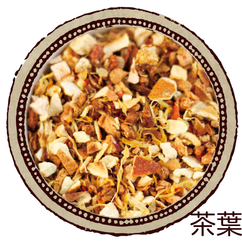 オレンジピール、乾燥りんご、ベニバナ、マリーゴールド、乾燥洋梨、マンダリンオレンジピール/香料、(一部にオレンジ・りんごを含む)
