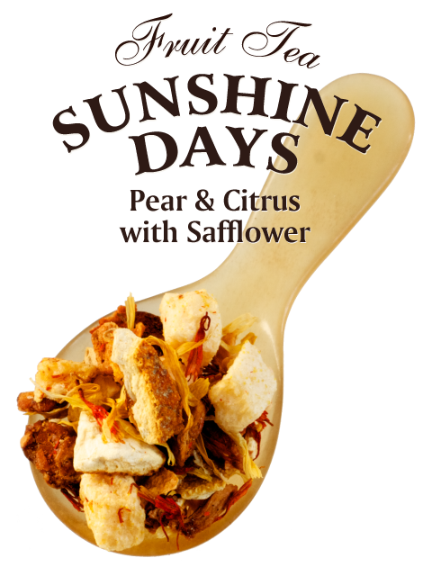 ベニバナやマリーゴールドがつくりだす黄金色の水色 と果実の爽やかな口当たり。春の日溜り、夏の陽射し、秋の木漏れ日。光に包まれた記憶を呼びおこす味わいです。厳選された酸味を抑えた素材が、時間を選ばずに楽しめるカフェインフリーというのも嬉しい銘柄です。