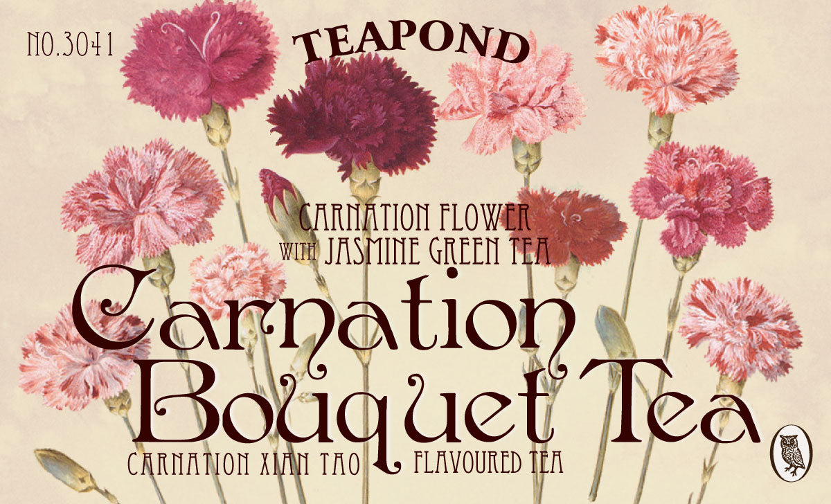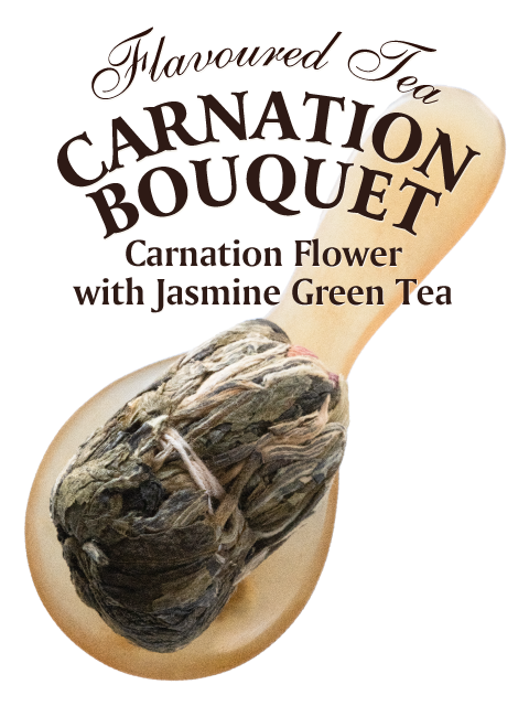 カーネーションを、ジャスミンティーで丁寧に束ねた、花束のように美しいお茶です。