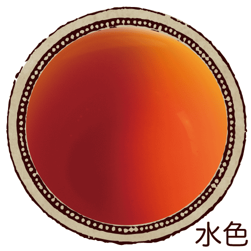 黒く引き締まった茶葉から抽出される栗色の水色(すいしょく)。ナッツを思わせる香りにムスクのようなほのかな甘い香りが重なり、深みがありつつもホッと穏やかで落ち着く味わいです。