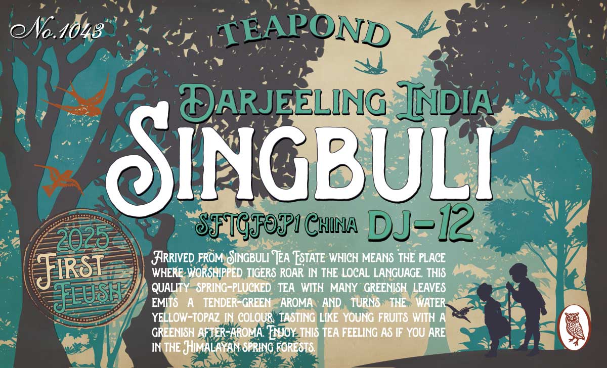 Arrived from Singbuli Tea Estate which means 'the place where worshipped tigers roar' in the local language, this quality spring-plucked tea with many greenish leaves emits a tender-green aroma and turns the water yellow-topaz in colour, tasting like young fruits with a greenish after-aroma.